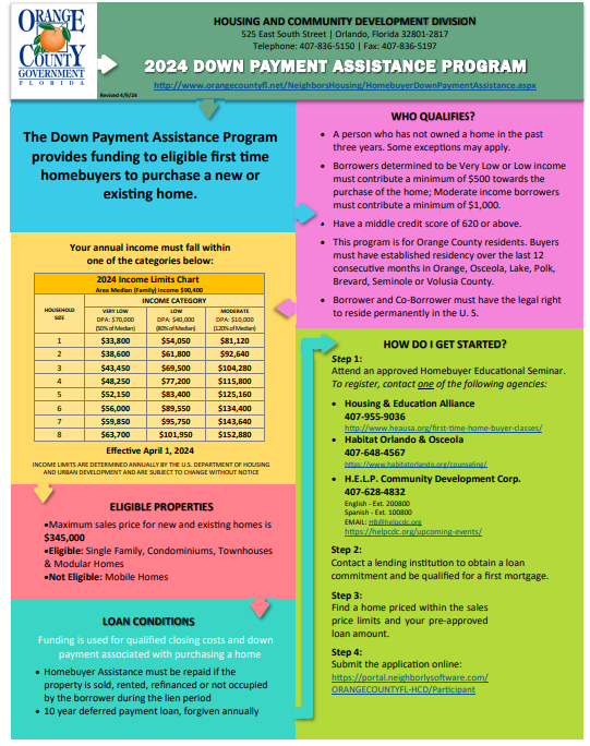 The Orange County Down Payment Assistance Program – provides assistance to qualified first time homebuyers for down payment and closing costs associated with purchasing a home.